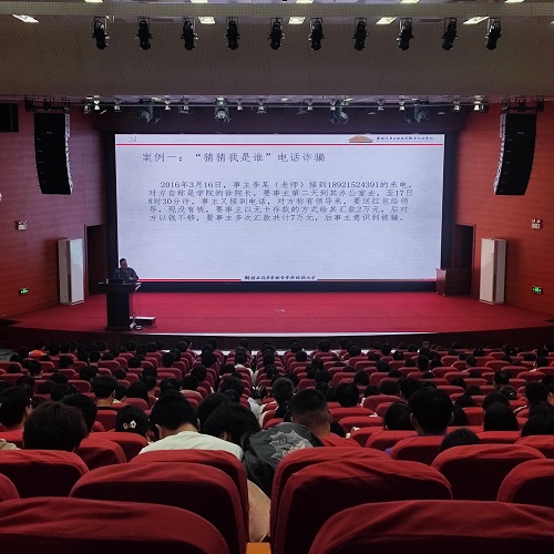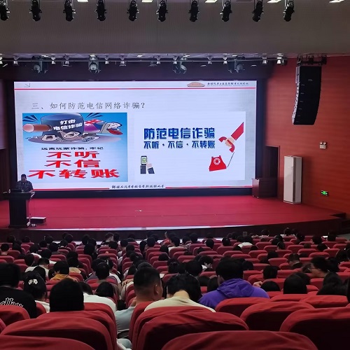 为进一步增强我校师生员工防范电信网络诈骗的意识与能力,构筑安全和谐的校园环境,10月14日下午,在报告厅我校组织开展主题为“防范电信网络诈骗 你我共建无诈校园”宣传教育活动。活动由建筑工程系德育主任赵明主持,安全与保卫处陈珏孚老师主讲,来自院系约600人参加了此次活动。